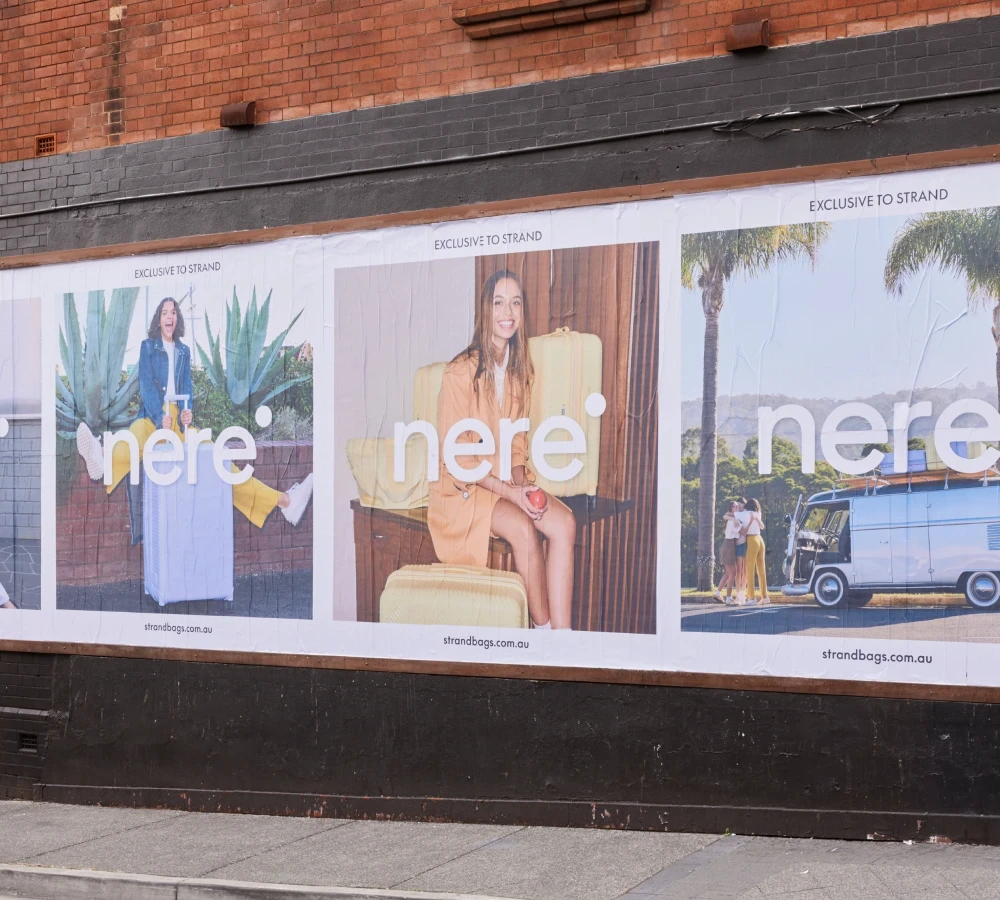 Outcome — A cohesive video and OOH campaign rooted in 90s nostalgia and pastel aesthetics that drove awareness for the Bondi collection and strengthened Nere's brand identity in the travel accessories market.
